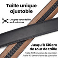 Notre ceinture est universelle et s'ajuste de 80cm à 130cm de tour de taille.