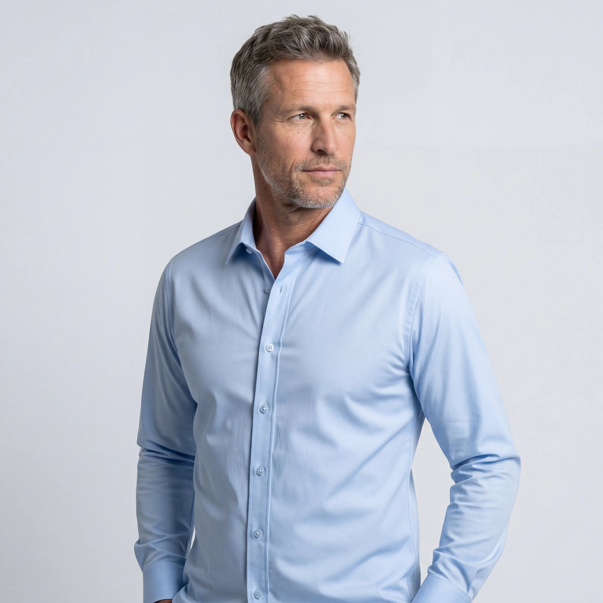 Cette innovation permet à nos chemises de rester sans plis, respirantes, tout en offrant une élasticité, garantissant ainsi une liberté de mouvement.